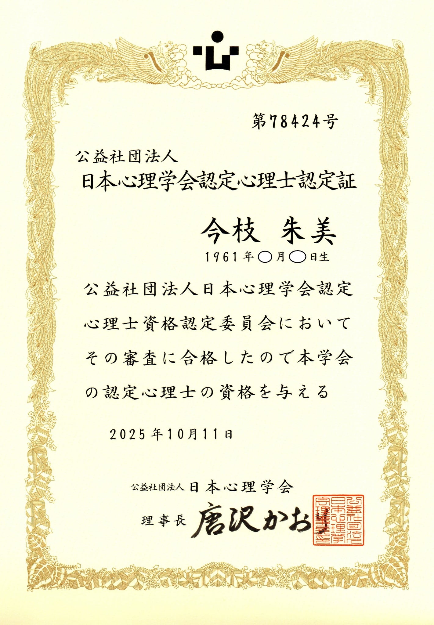 ・公益社団法人 日本心理学会認定 認定心理士(2025.10)