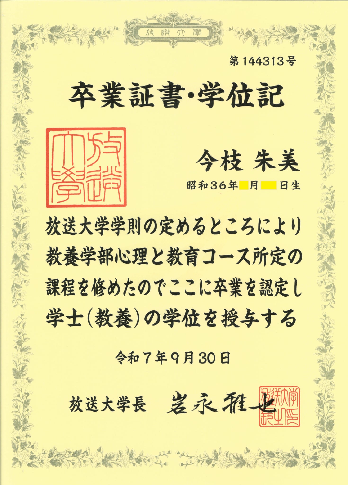 ・放送大学教養学部心理と教育コース 卒業(学士〔教養〕取得)(2025.9)